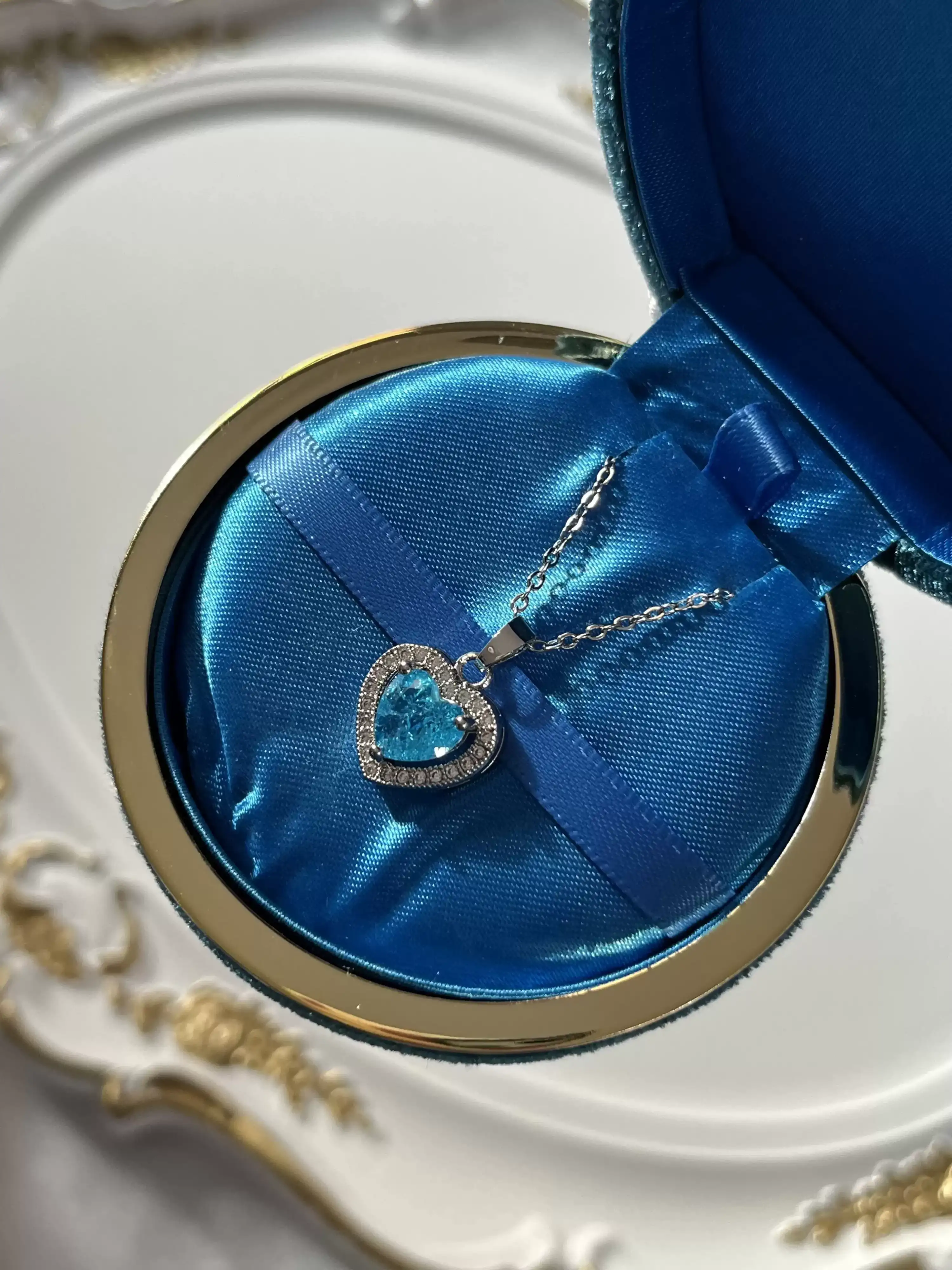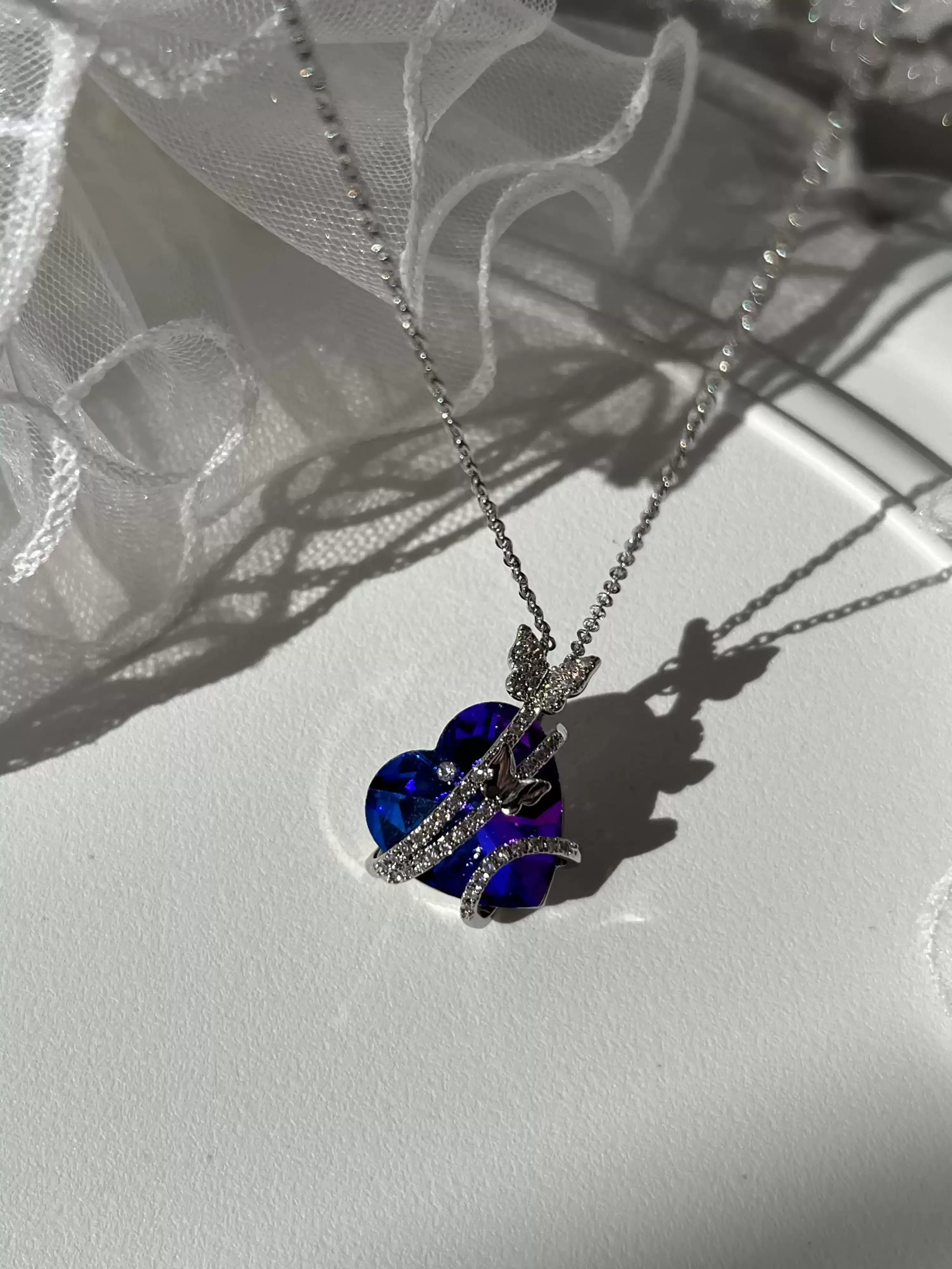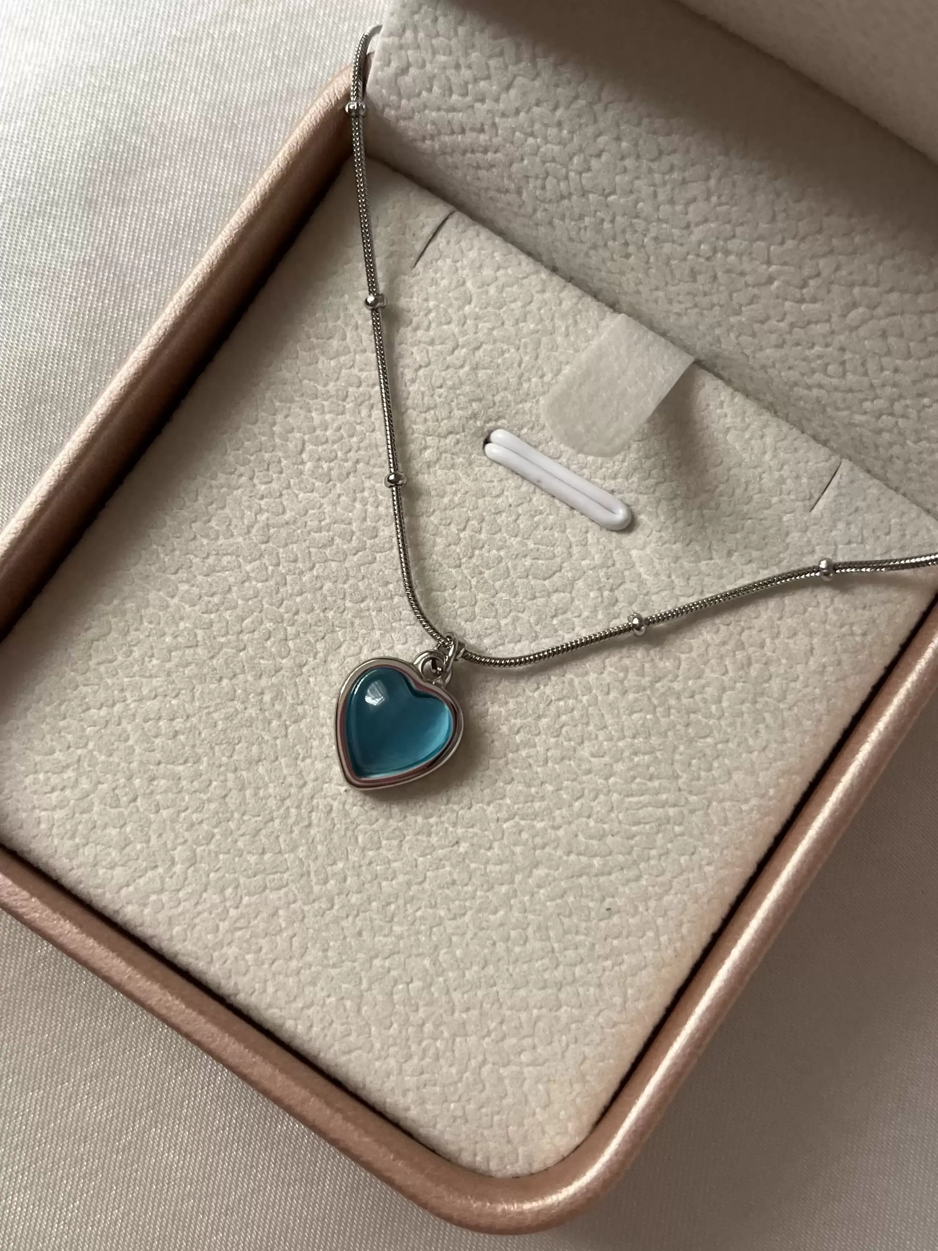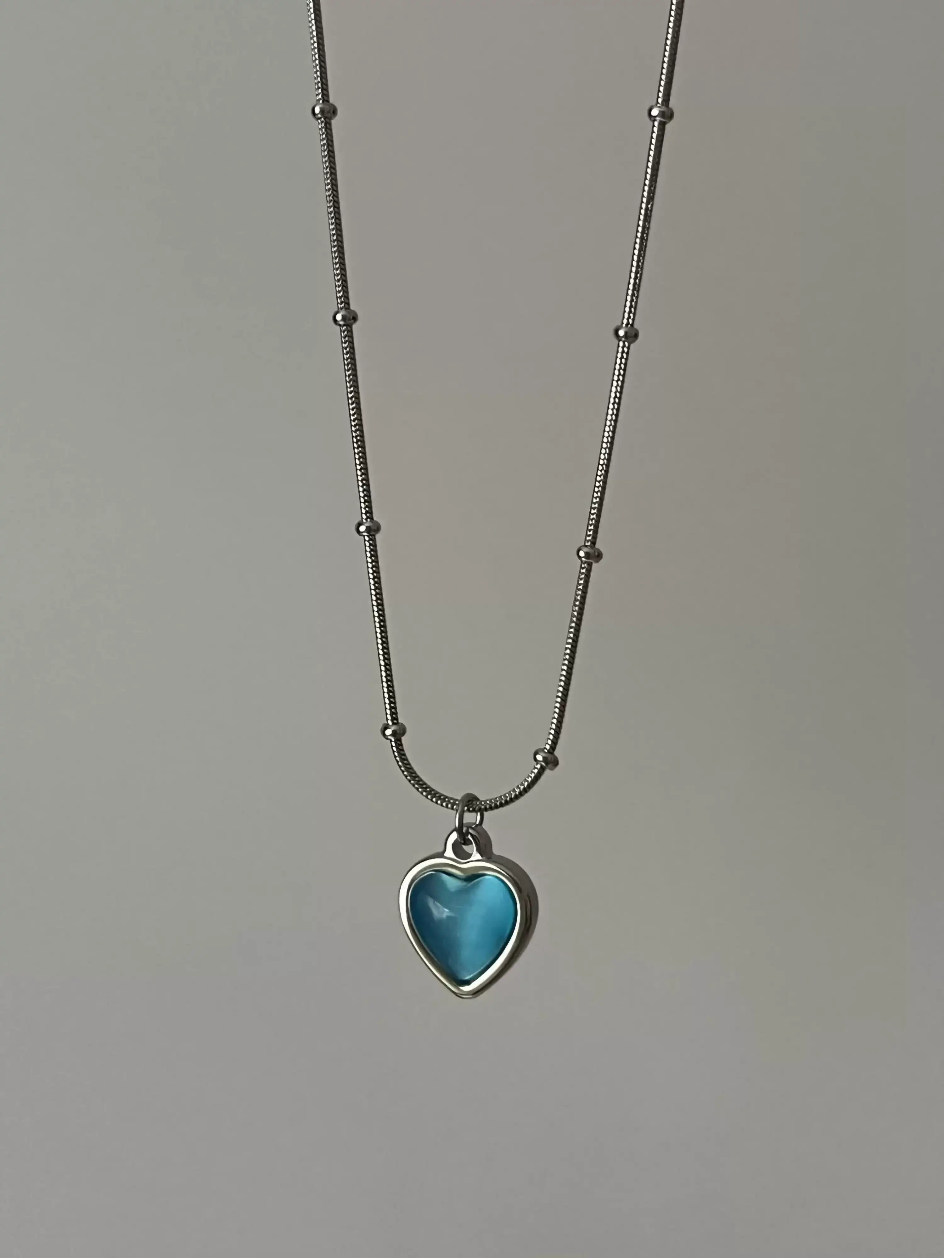 Çelik Mavi Taşlı Kalp Kolye