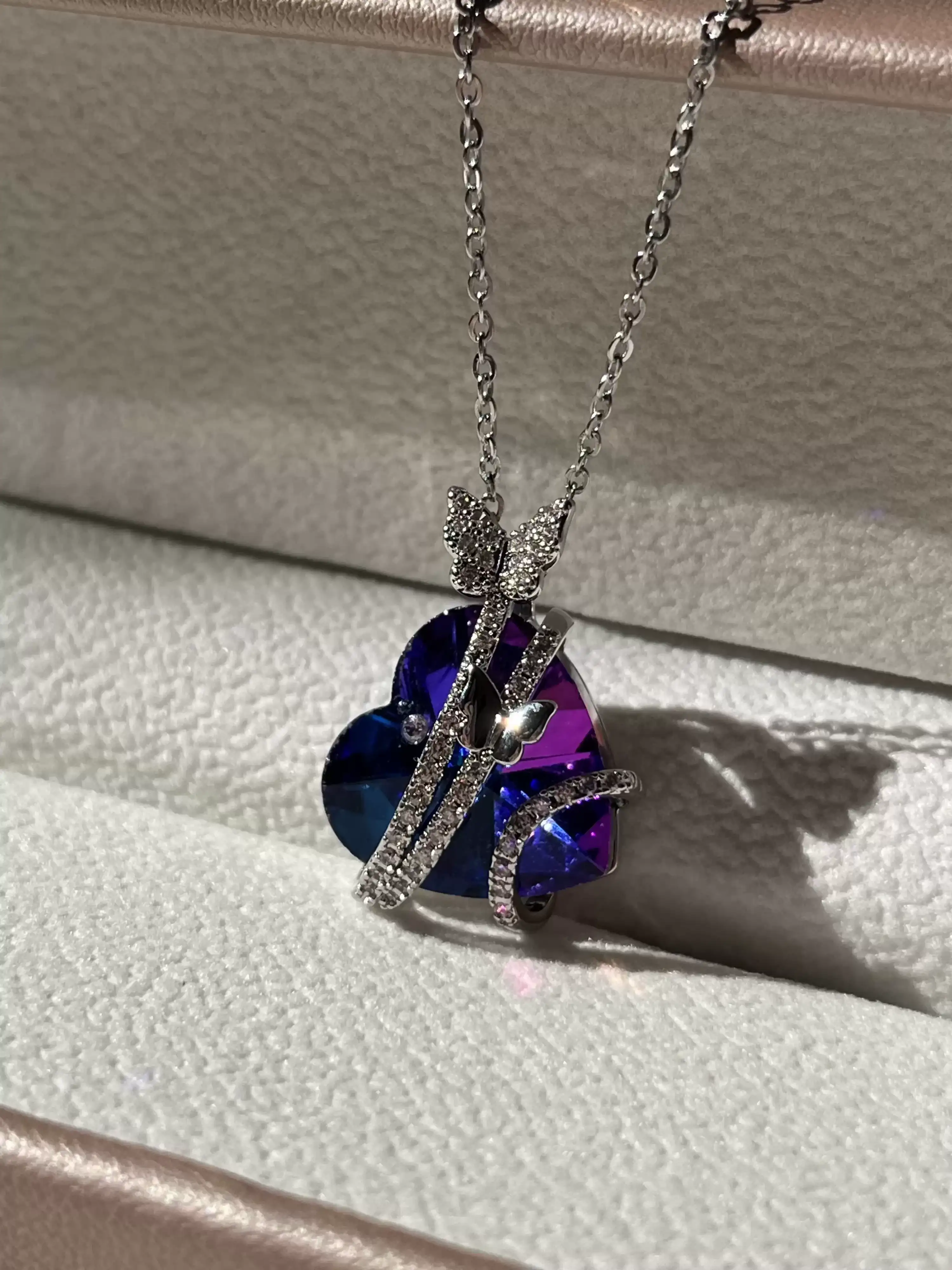Çelik Kelebek Detaylı Kalp Kolye