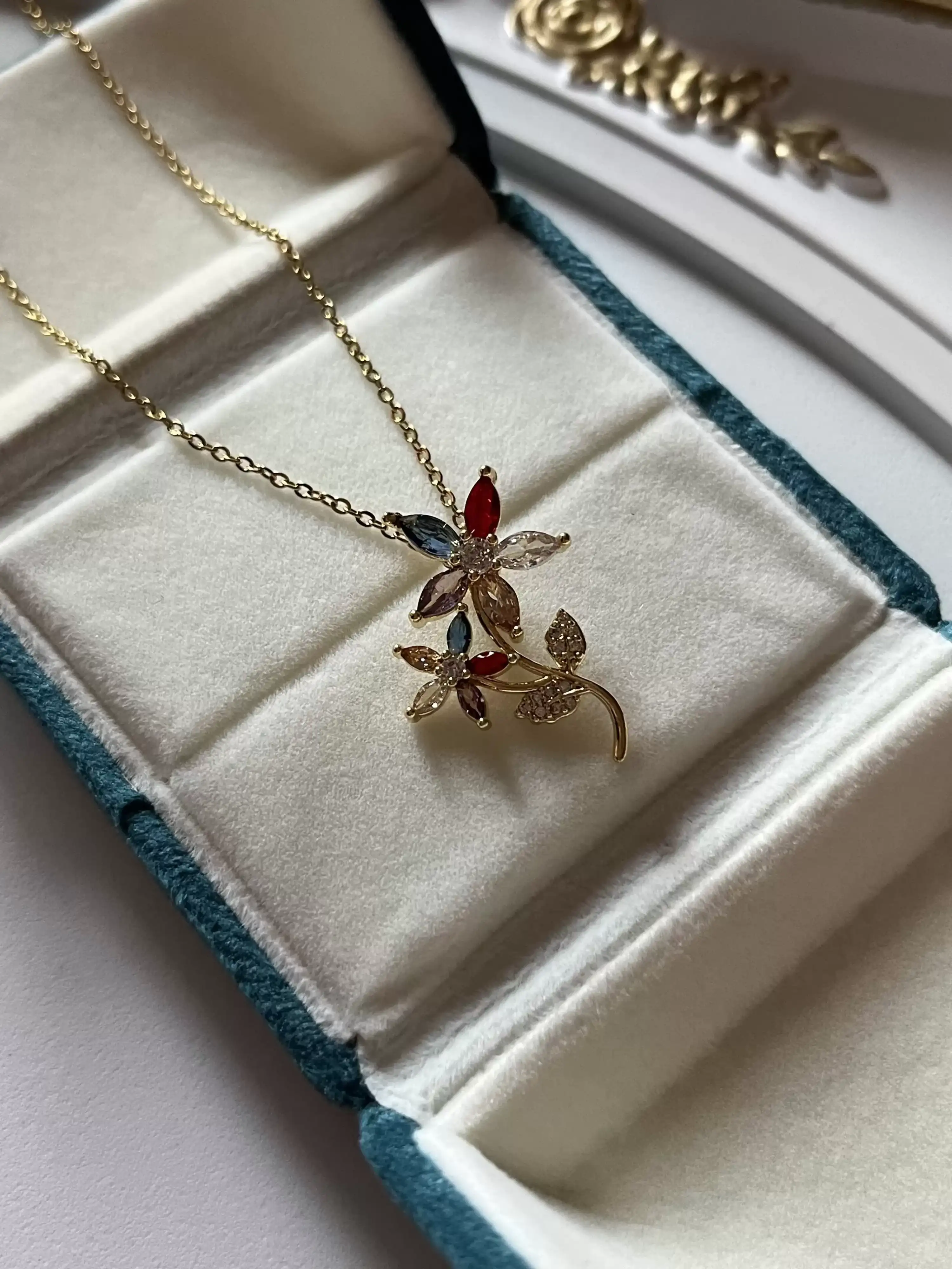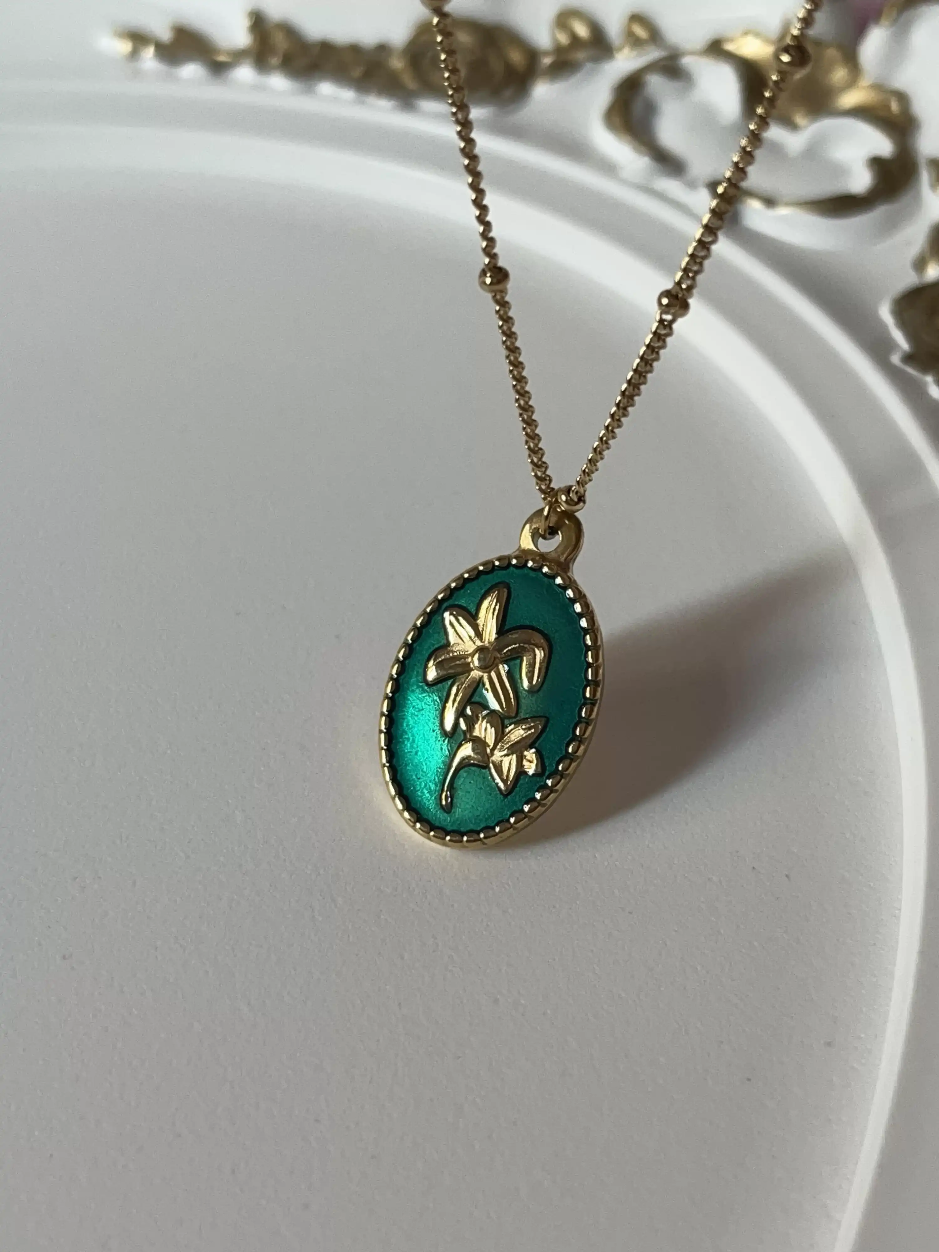 Çelik Çiçek Detaylı Yeşil Kolye