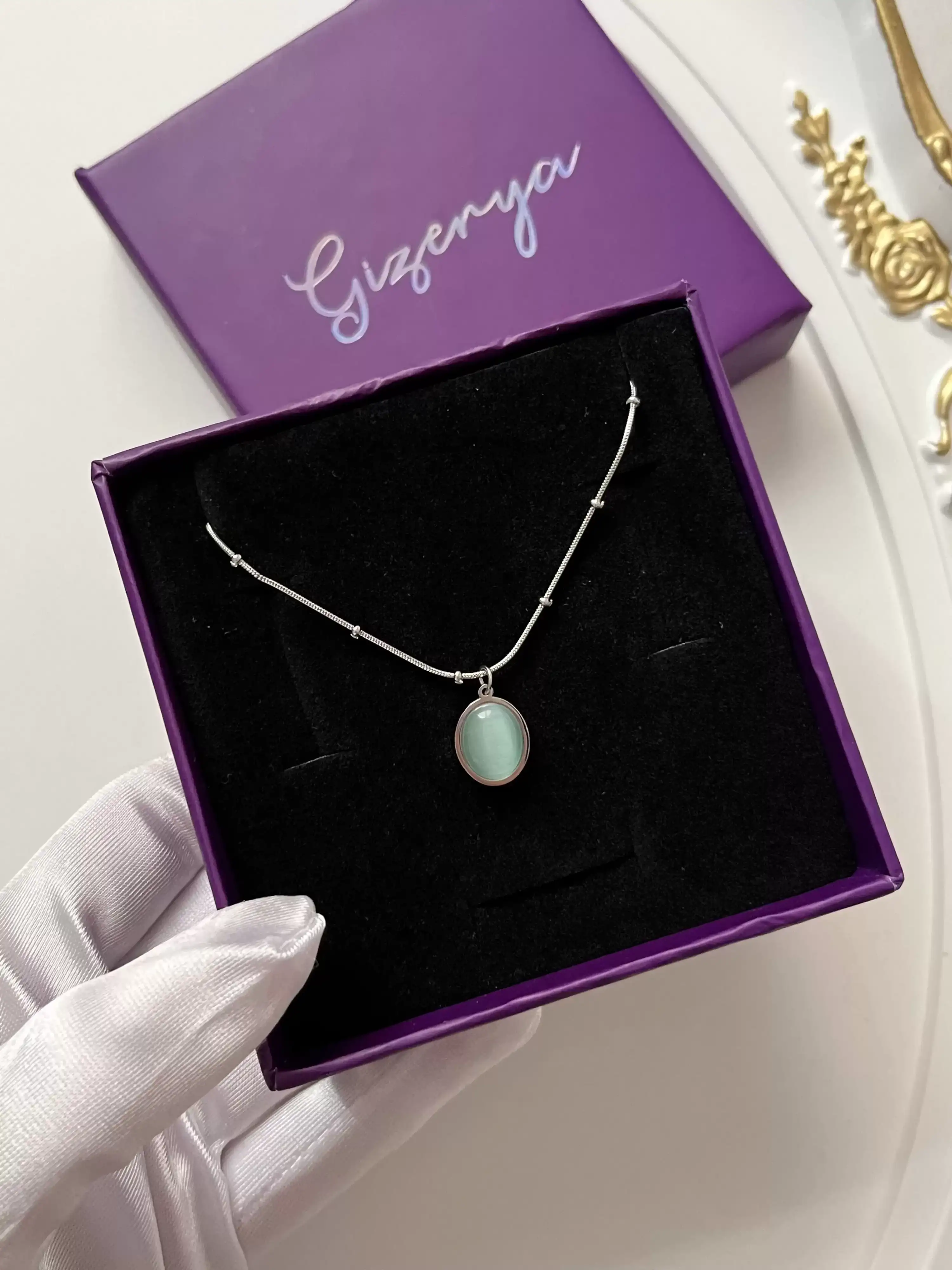 Çelik Yeşil Taş Kolye